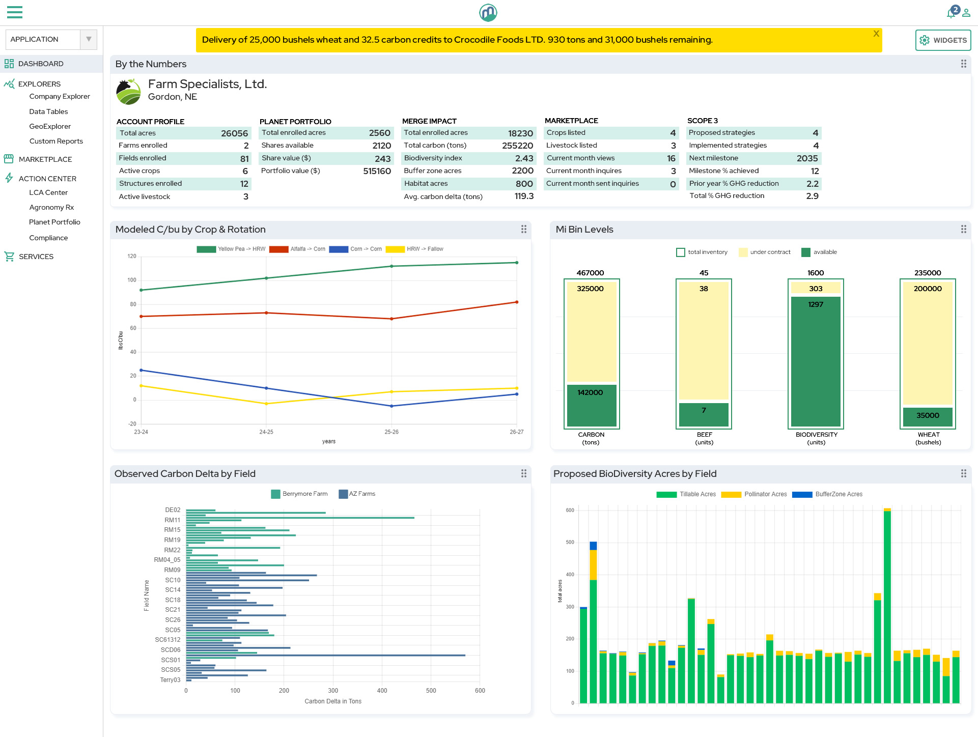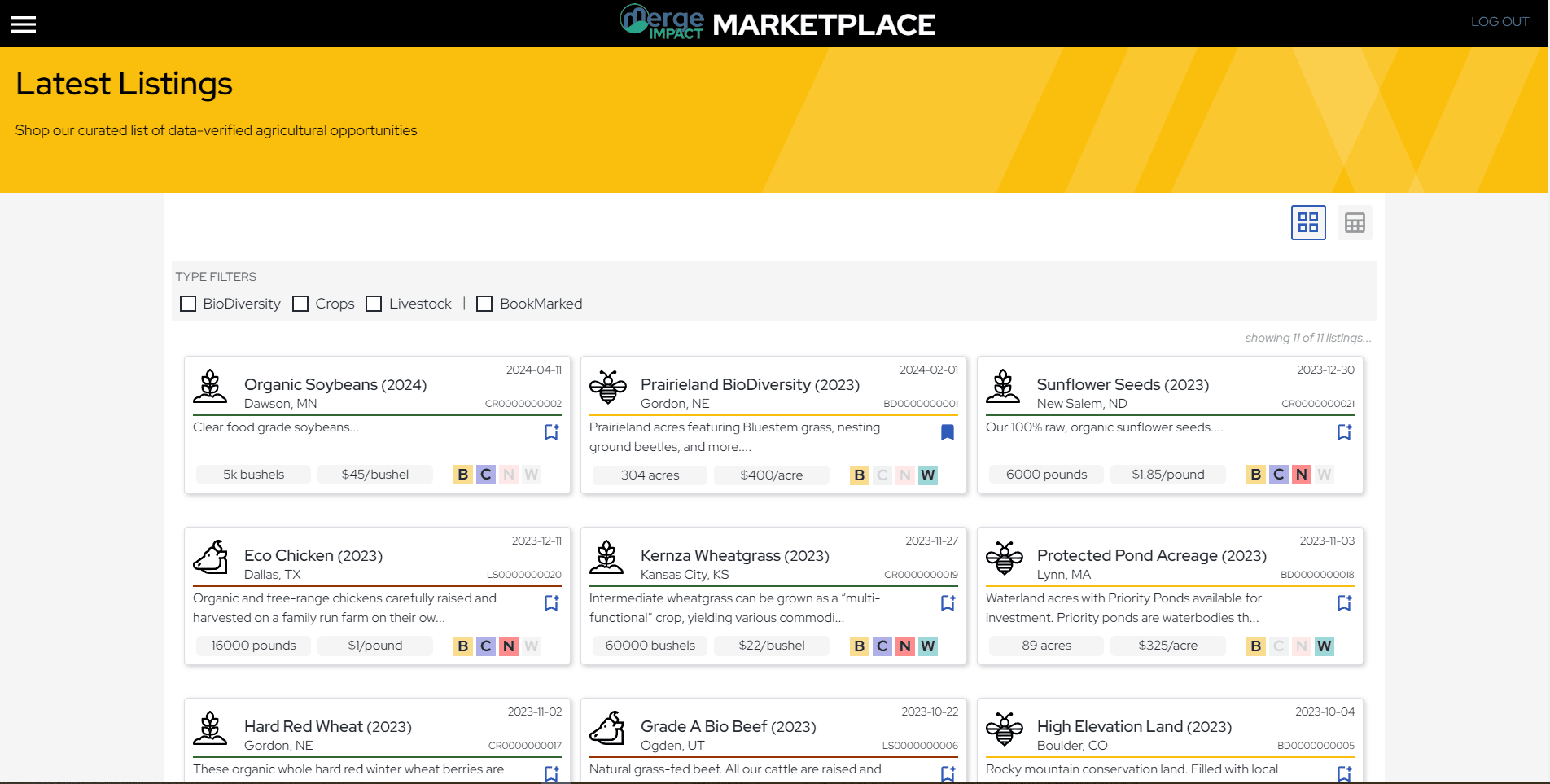 The Merge MarketPlace creates automatic listings for enrolled producers. Everything from biodiversity shares to carbon credits to producer crops are featured in one convenient location.